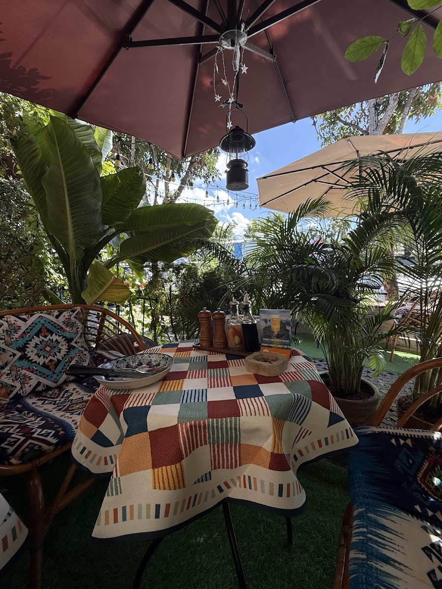 I came here with my family. You walk in from the quaint, beautiful street into … what seems like a caravan. There are ribbons and lights hanging from the ceiling, and spin and dance as the music plays, and you hear sounds of tropical birds as you bathe in the balmy summer air. You pass by some ornate rugs and choose a cozy table. The restaurant is not huge, but it’s very cozy and quaint. And it smells amazing. We shared everything. We ordered the delicious tomato salad, uzbek pilaf (aromatic rice with meat), cheburek (pastry filled with beef and onions), grilled chicken skewer, and a meat soup (I’ve forgotten the name, apologies). But! You don’t need to remember the name of anything I just listed, because anything you order will be delicious. I was overwhelmed (in a good way) by all the flavours, the care from the service staff, and the nostalgia (my cheburek and kvass in hand tasted exactly like childhood). I think this is my favourite restaurant in Phuket. Please do not miss this gem in Bang Tao. Where a smorgasbord of cultured gathered around in a beautifully designed shopping destination to share their rich culinary and cultural heritage with the beautiful island of Phuket. If Phuket is the pearl of the andaman sea, the caravan is a jewel in Phuket’s multicultural adornment. Thank you, staff at the caravan!