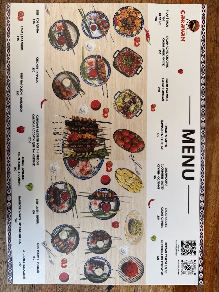 The menu at Узбекская кухня Caravan Phuket offers a thoughtfully curated selection that blends traditional Uzbek fare with familiar European touches, presented in a casual café style. You’ll find comforting, hearty dishes alongside refreshing drinks, perfect for a relaxed meal any time of day.